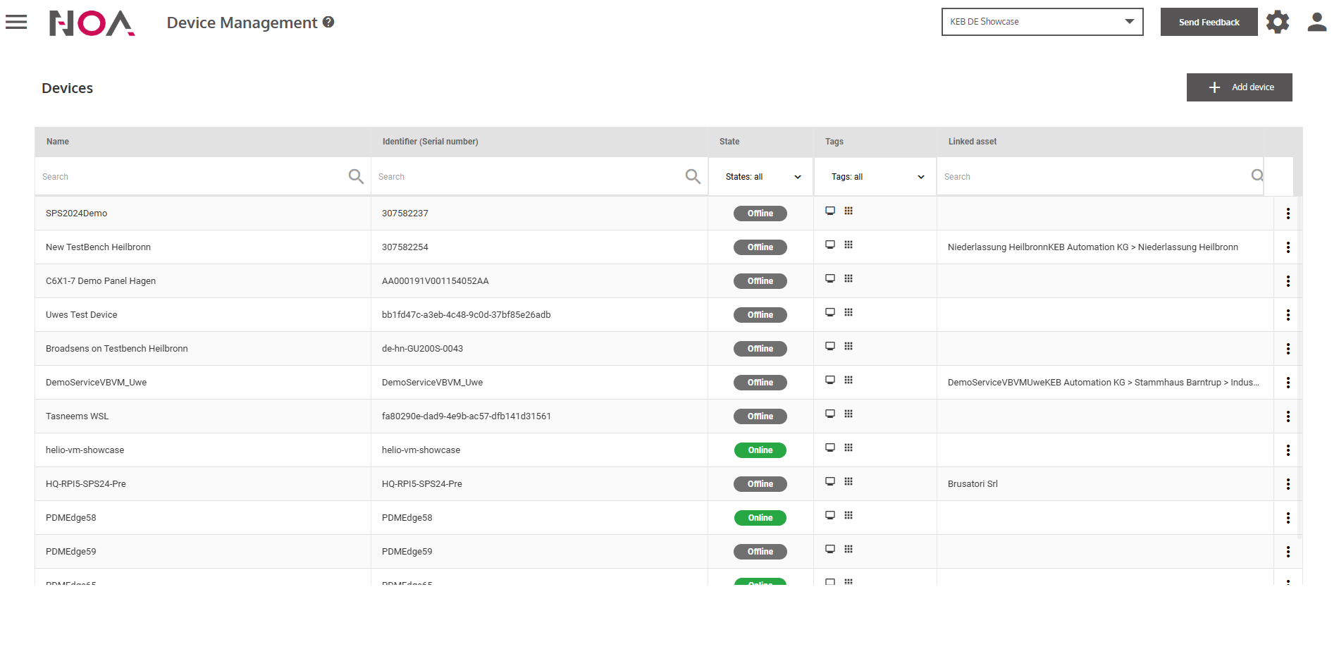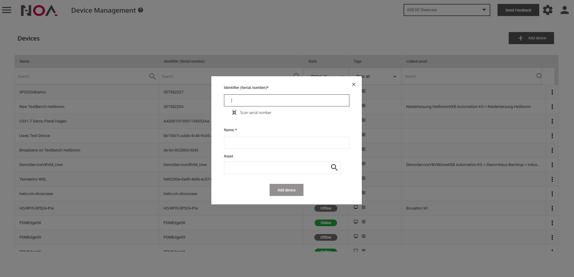 to NOA Portal for Use Cases like Condition Monitoring. First, you need to add the Deviceto your Tenant. For further information visit the Add Device