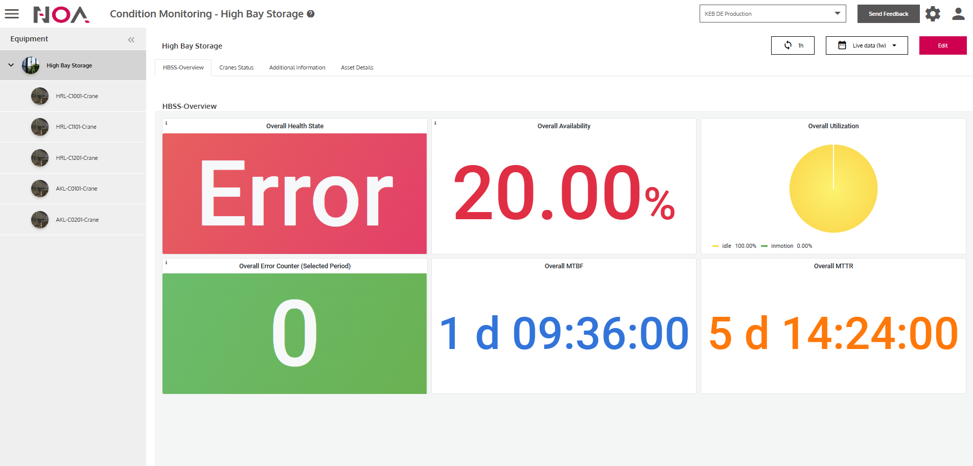 Below is an example Grafana Dashboard of the KEB High Bay Storage.