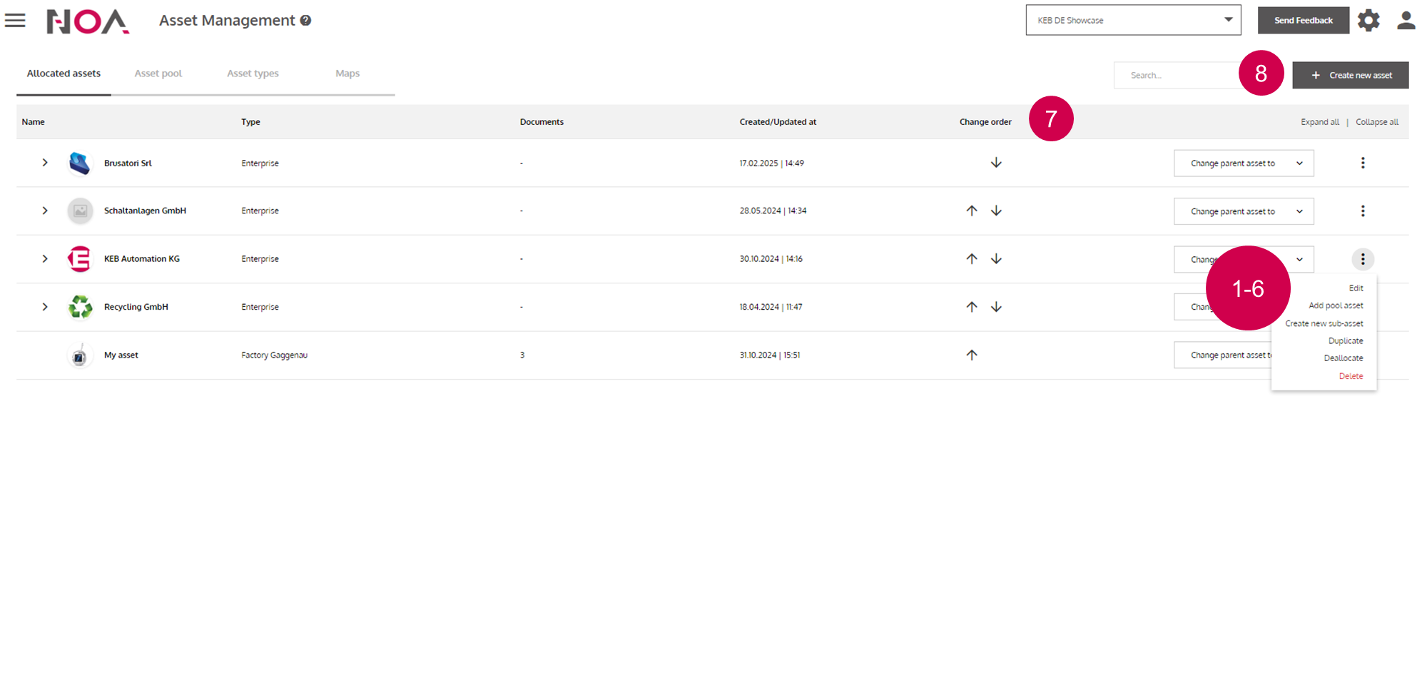 In this tab, you can see the Asset Tree of your Tenant. Allocate your Assets in the Asset Pool to display them here.