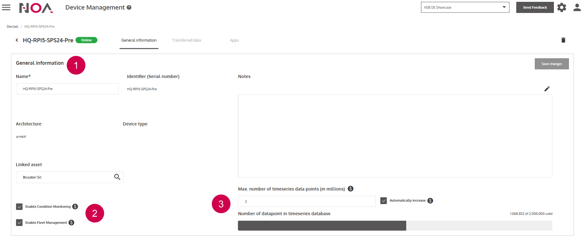 Devicestransfer to NOA Portal - The amount of data that is stored in the Cloud is a billing relevant factor