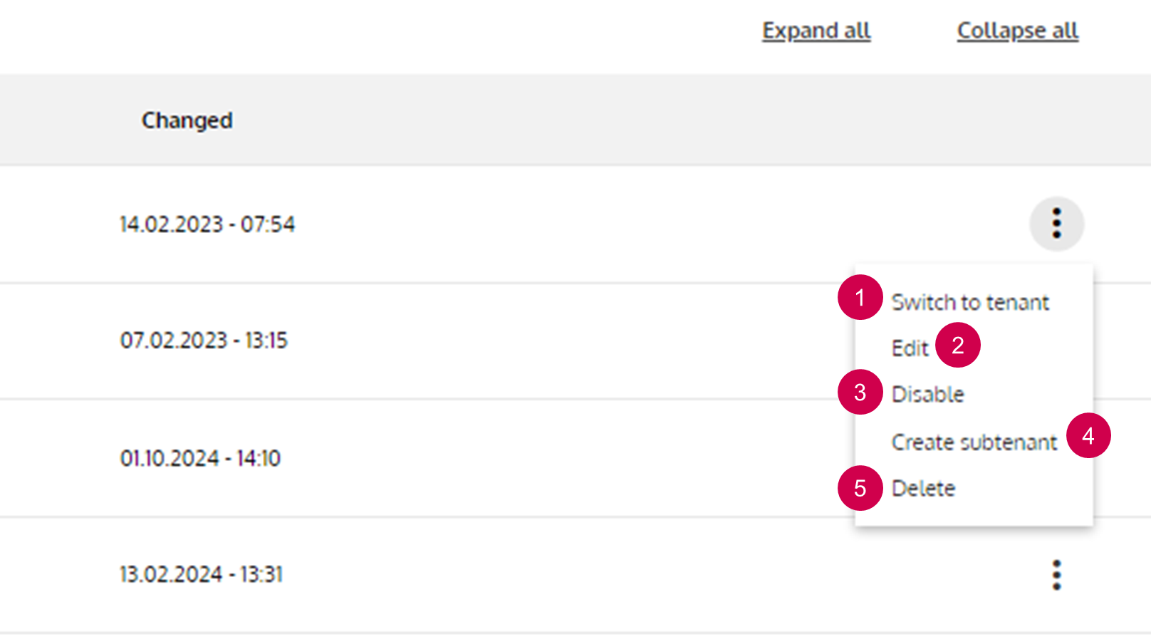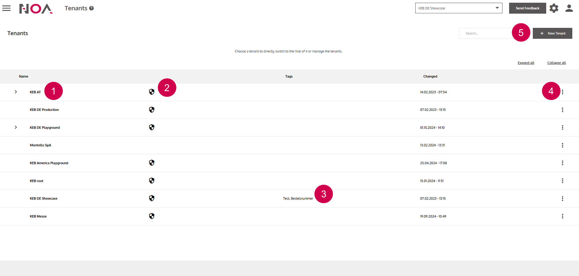 In this Tenant Table, you get an overview of all Tenants that you have access