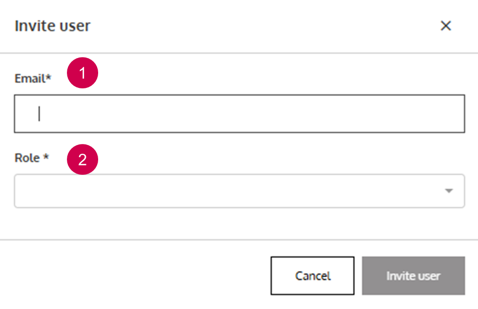 When you click on Invite User, a dialog opens up to enter information of the user