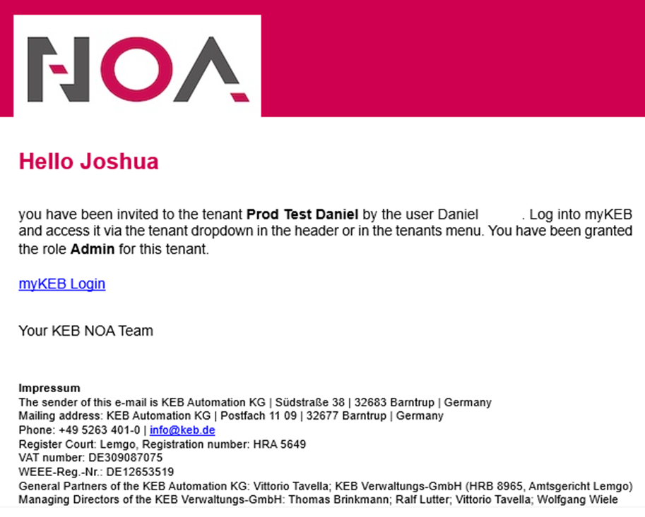 noreply@iot.keb-automation.com. The user needs to click on the provided link in